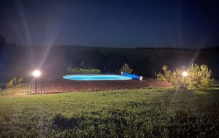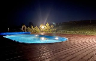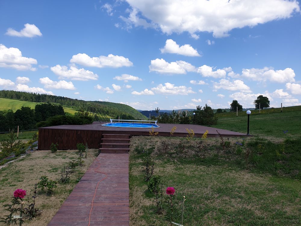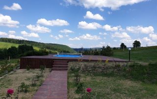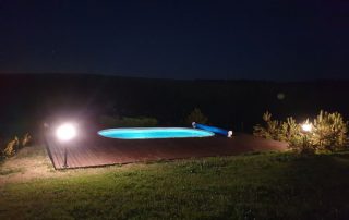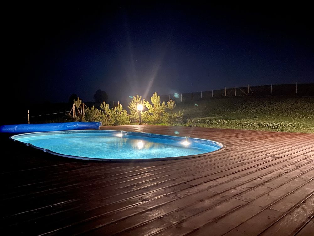 Naszych gości zapraszamy do korzystania z basenu z podgrzewaną wodą (temperatura 25-28 stopni Celsiusza). Wokół basenu jest olbrzymi słoneczny taras z widokiem na sąsiednie wzgórze, zaś klimatyczne oświetlenie pozwala cieszyć się chwilą bez względu na porę ;)